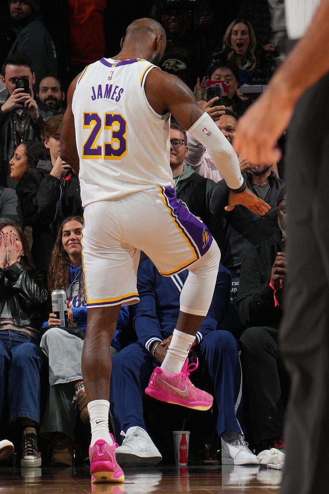 76人也不敢再让砍下31分的东契奇在关键时刻出手,无限包夹,鼓励湖人其他人处理球。在里夫斯全场16中3哑火之际,老詹的无球进攻接管了比赛:东契奇+艾顿挡拆吸引夹击,老詹在左翼45度接应,两记三分和两记中投射杀76人——关键时刻连拿10分,一己之力主宰了比赛。