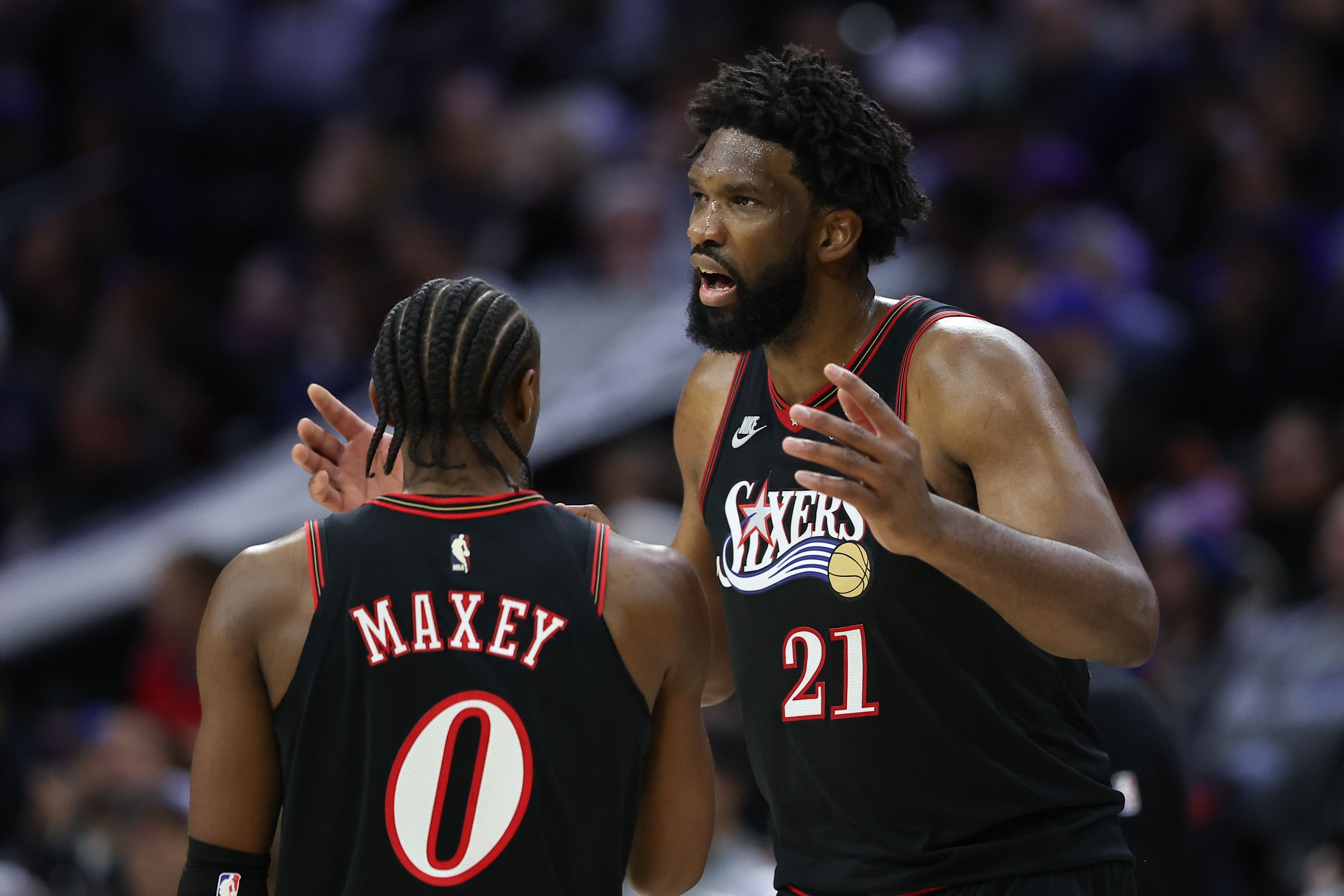 76人也用马克西带一组、恩比德带另一组,当马克西在场时,76人能打出单挑突分带动射手群三分扫射的进攻体系,而恩比德单独带队时疯狂面筐出球中远投试手感,几乎不主动在低位要球单打。