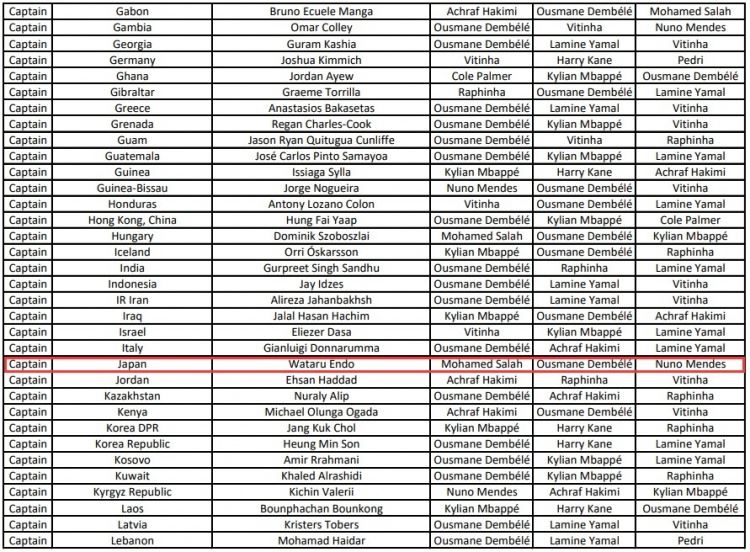 24直播12月17日讯 FIFA年度最佳球员投票,日本队长远藤航的投票结果出炉,他的第一选择是利物浦队友萨拉赫。