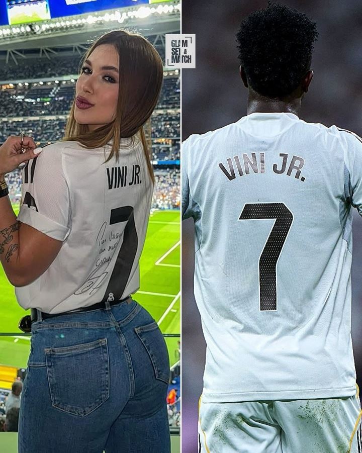 弗吉尼亚本月初刚身穿维尼修斯7号球衣现身伯纳乌